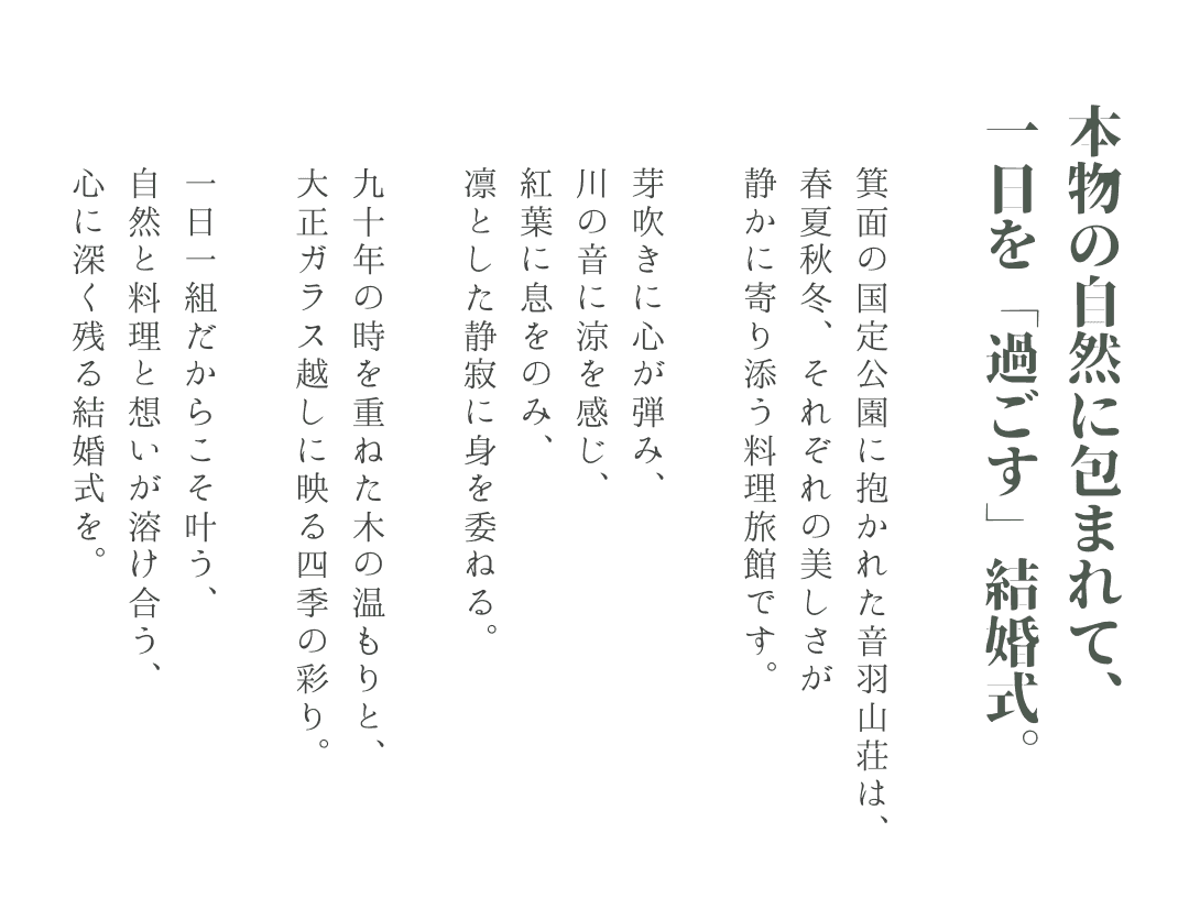 新しい芽が吹き、木々が緑に輝く新緑の季節の美しい時期に、美しい景色と季節の懐石料理でおもてなしできる特別プランです。