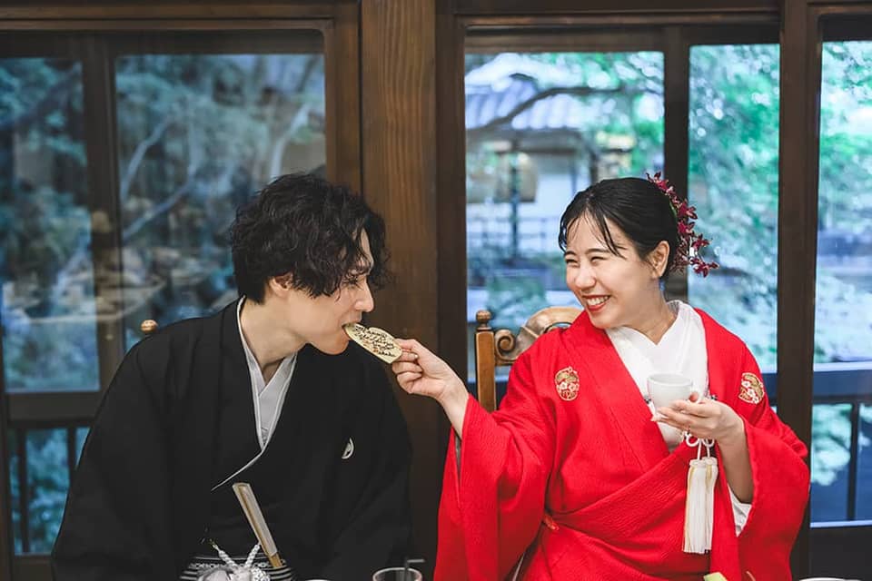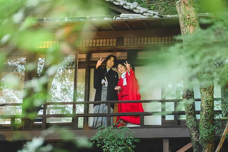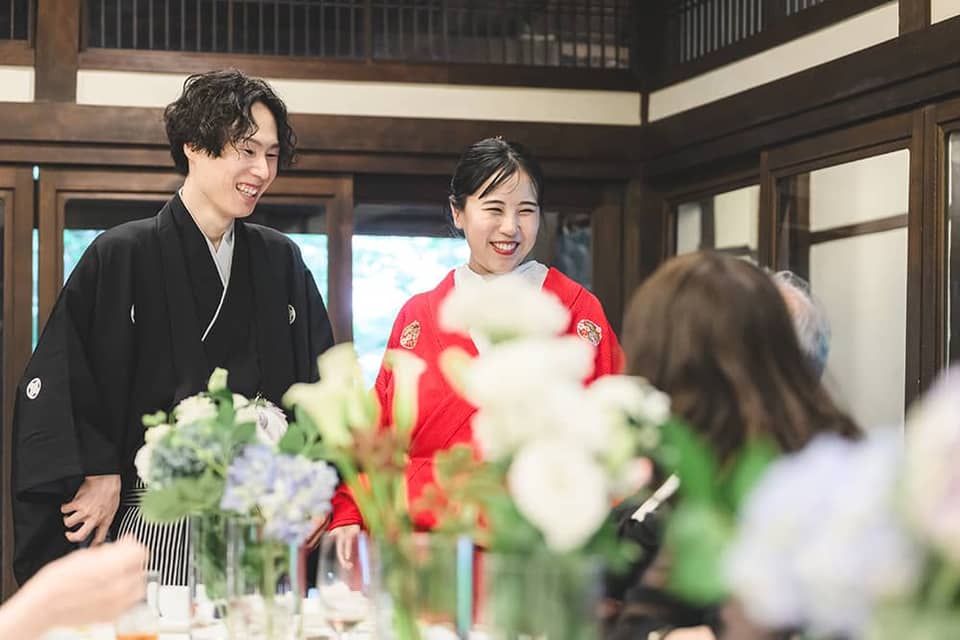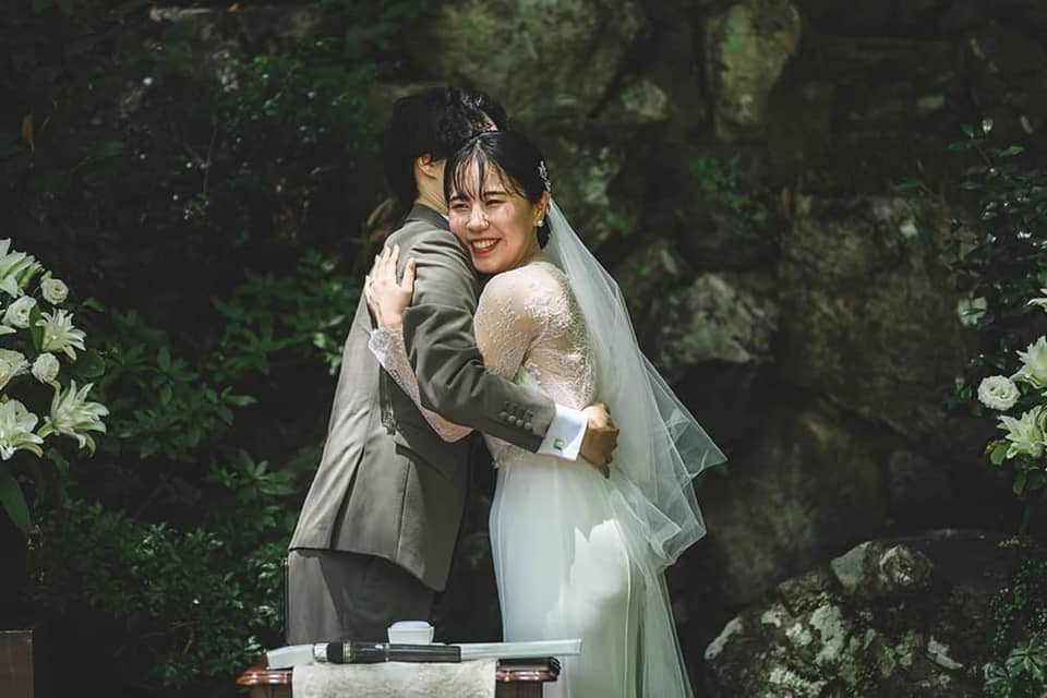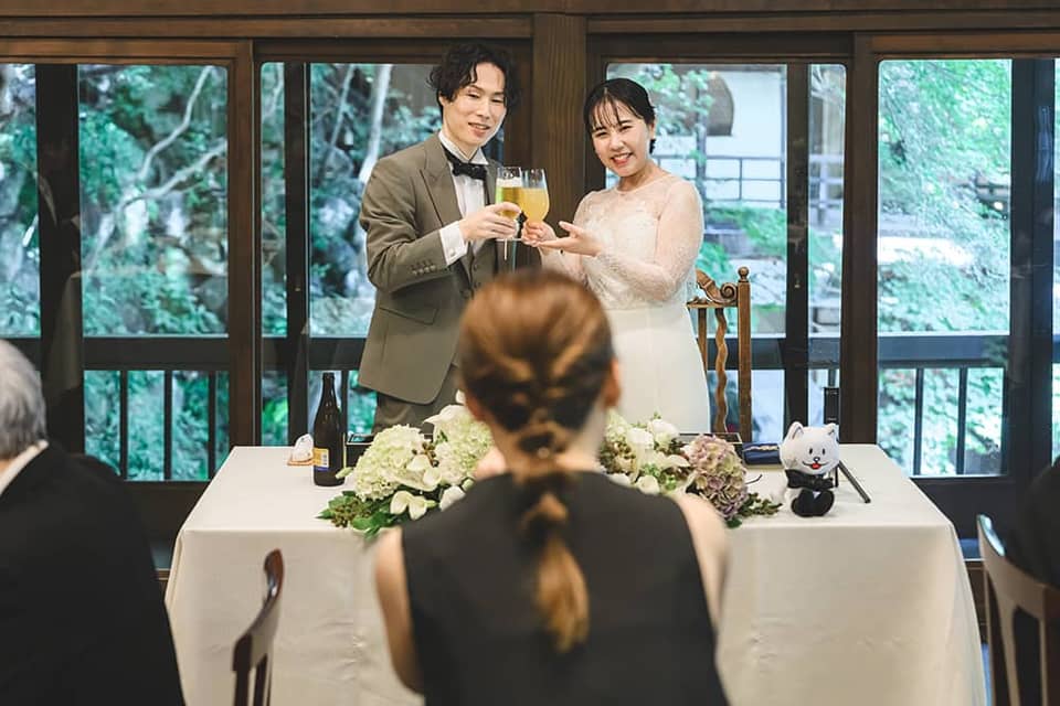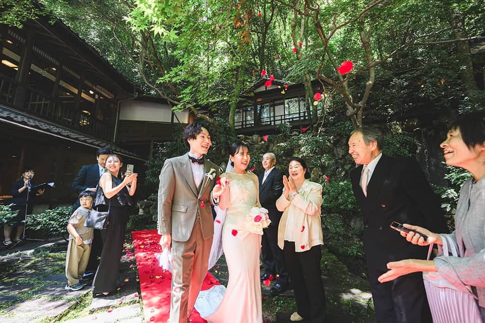 結婚式をすると決めてから親族のみで少人数の式にしようと思っていました。派手な演出はしたくないけれど、食事会だけというよりは家族と特別な時間を過ごし思い出を残したいとざっくりとしイメージで音羽山荘に見学に行きました。敷地に入った瞬間に、庭園の澄んだ空気と厳かな雰囲気に感動し、その場所で挙式ができると聞き、ここでならただの食事会にならず特別な思い出が作れそう!と感じました。なので、音羽山荘に入った第一印象で決まっていた気がします。