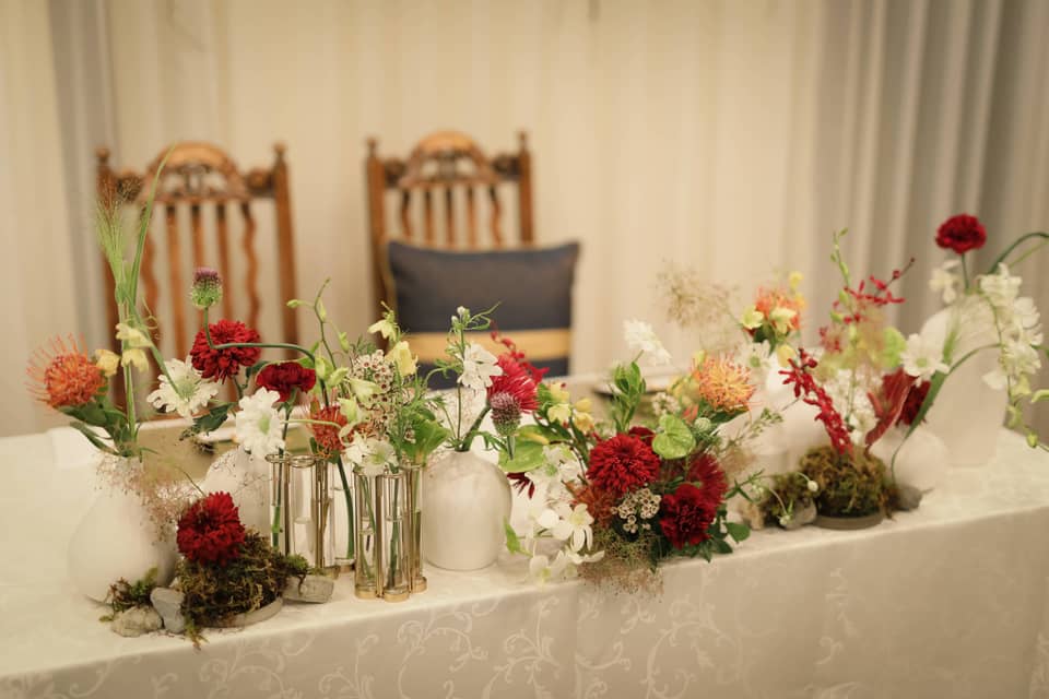 大好きなお花屋さんに担当してもらえた事が何よりも嬉しかったです。元々空間づくりや、生花は趣味のひとつなので、空間コーディネートを考える時間がとても楽しかったですし、こだわりをかたちにすることができました。