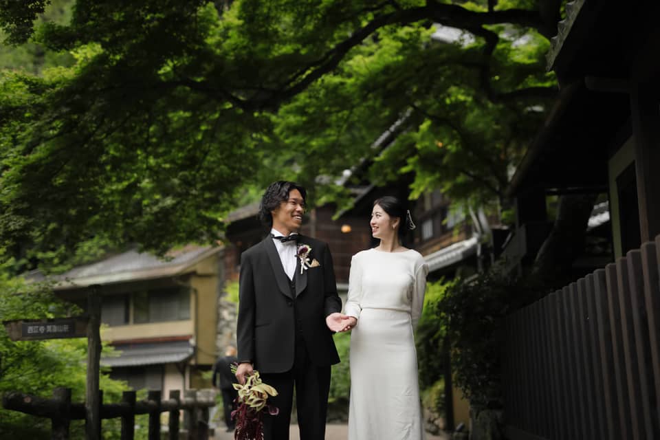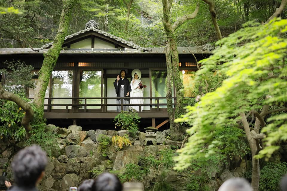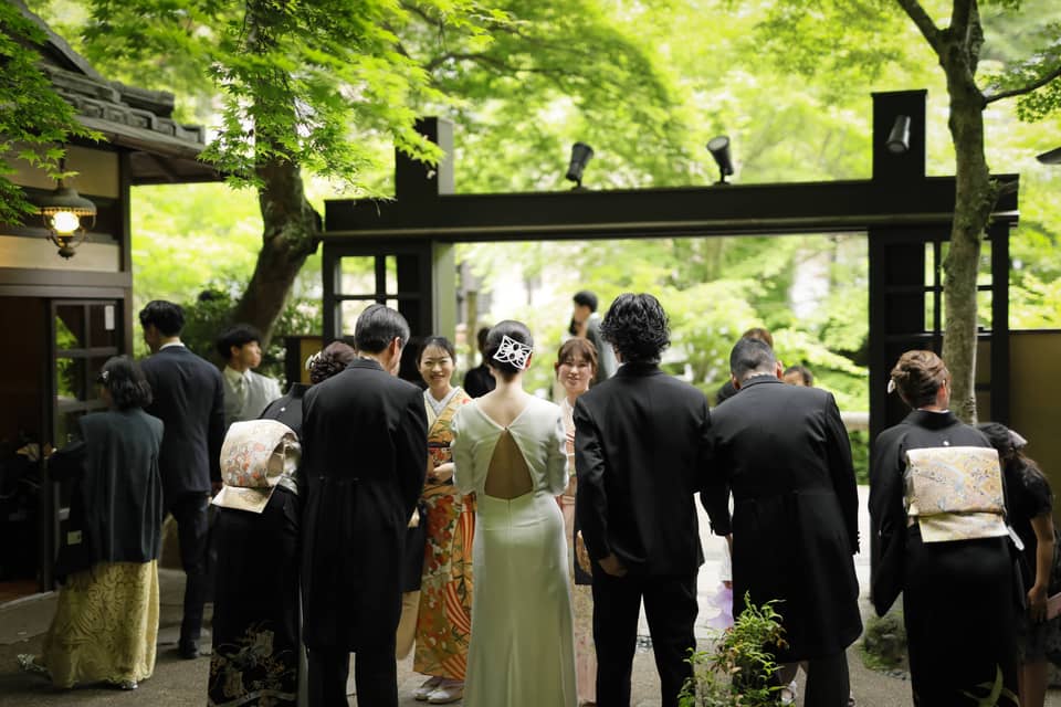 結婚式のために造られた建築ではなく、長い間大切に管理されてきた歴史ある建築を結婚式の場所として活用されている点にとても惹かれました。新しさと古さの融合がとても上手で、ほぼひとめぼれで決めました。そして新緑の美しさも音羽山荘さんを選んだ理由のひとつです。