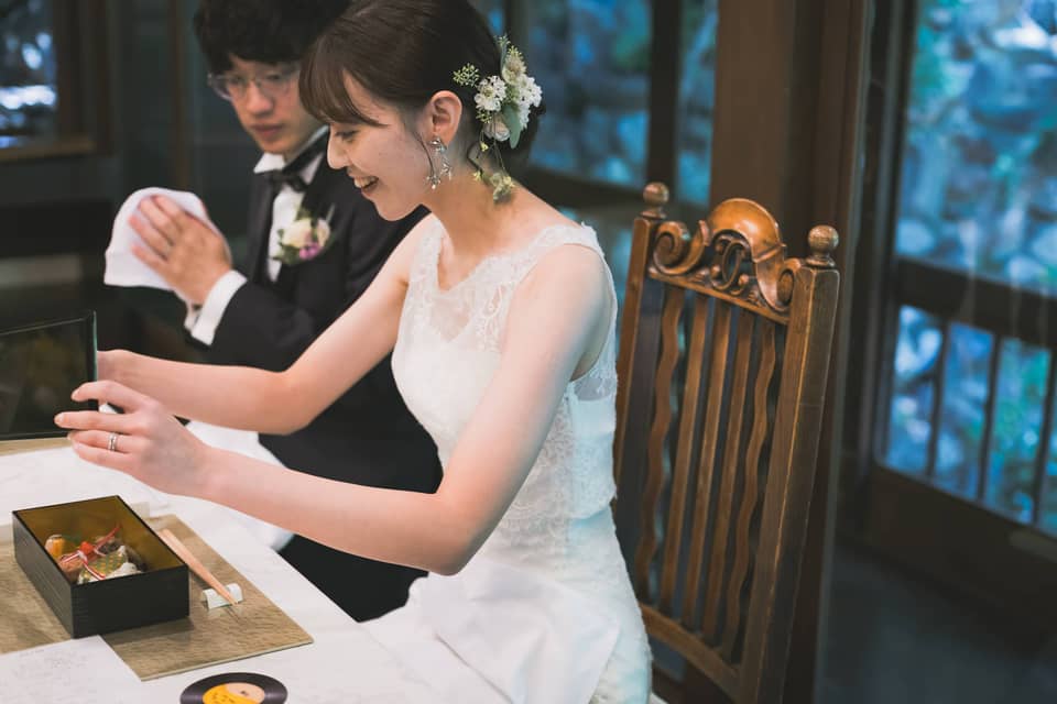 元々食事に訪れた際に食事と雰囲気に惹かれて気になっていました。結婚式をすると決めて、家族中心で落ち着いた雰囲気で式を挙げたかった事から、音羽山荘を選びました。